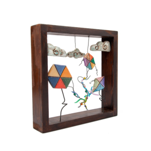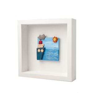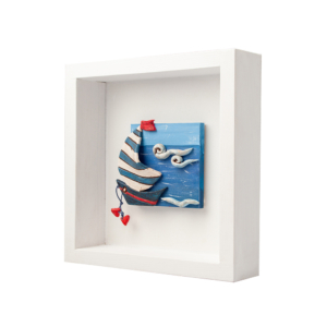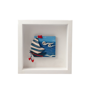 Wooden Box Frame with a ceramic nautical theme on wooden tile.